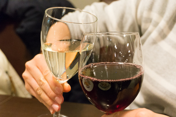 「私は赤ワインにした!カンパーイ