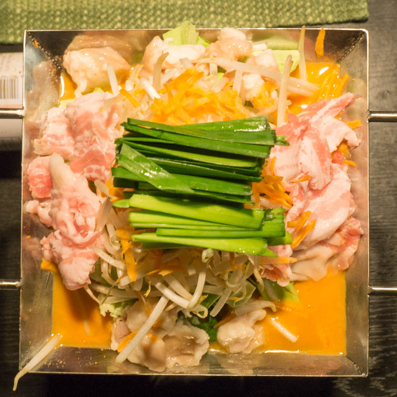 真上から見るとこんな感じ。野菜に豚肉、ホルモンといった構成です。