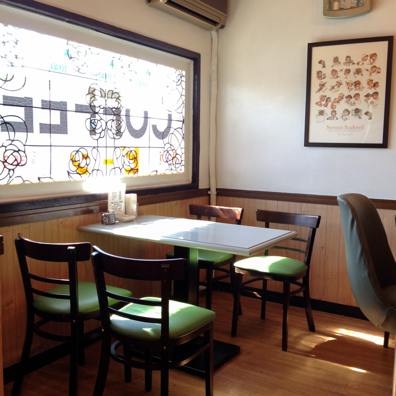 壁にはノーマン・ロックウェルの絵などが飾られておりクラシックアメリカンなテイストを感じるレトロで温かみのある店内。