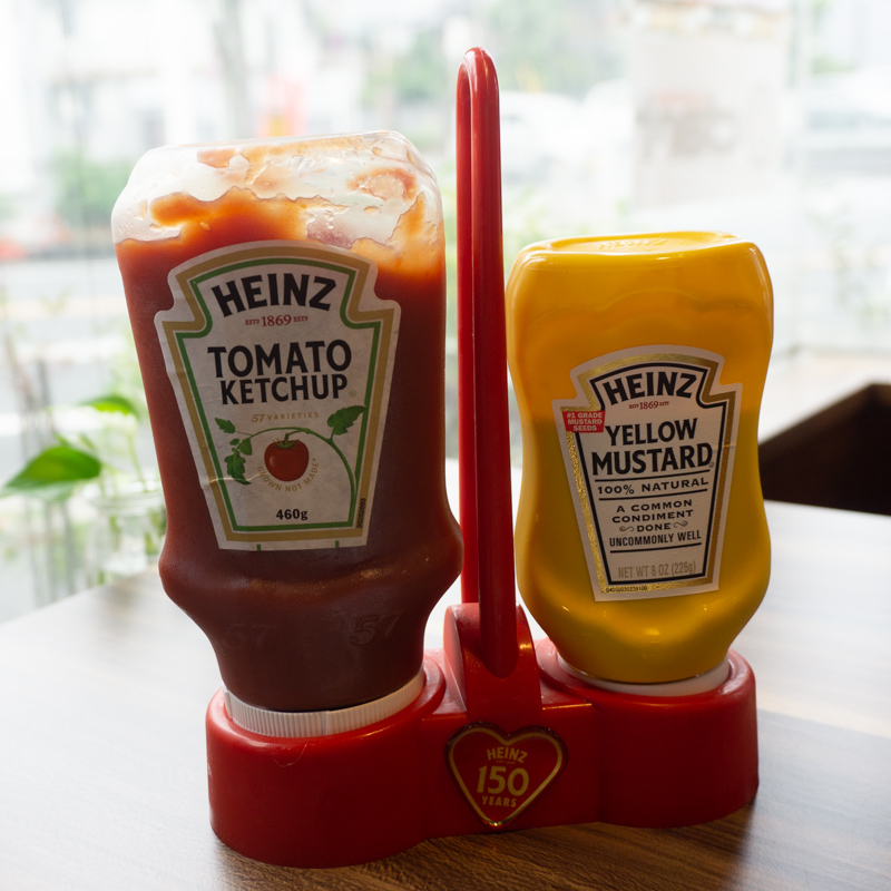 ハインツのケチャップとマスタードは自由に使うことができます。