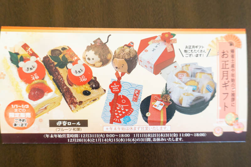クリスマスケーキのチラシはこちら。裏側にはお正月ギフトものっていました![]()