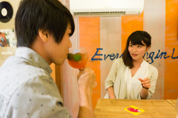 「このカクテル、さっきお店の人が好きに名前つけていいよ〜って言うてはったから名前ずっと考えてん。『ヒラカタ恋愛スペシャル』に決めた!」