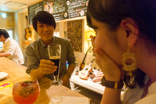 「デンちゃん飲みすぎたらあかんで(笑)俺が頼んだ黒ビールも、苦味の中にふんわりとした甘さがあって飲みやすい。ビールやのに甘みがあるなんて不思議な感じ!でも、香りはしっかりとしたビールやわ。美味しいで。デンちゃんも一口飲んでみる?」