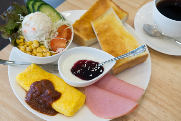 『モーニングBIGセット』(トースト・卵焼き・ヨーグルト・ロースハム・ポテトサラダ付き)¥450(税込)+コーヒー¥180(税込)