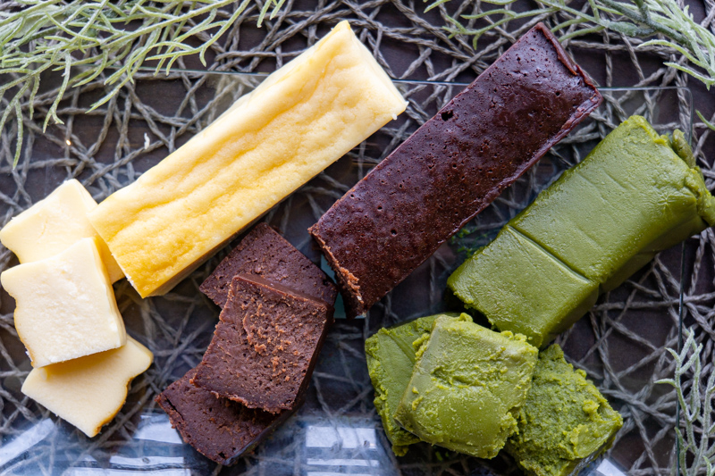 左からチーズ(580円税込)、ショコラ(780円税込)、抹茶(1080円税込)。