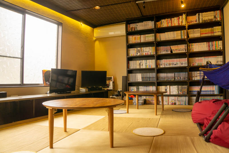 そして、漫画や本、ボードゲームなどがあります。右に見切れているのですが、ハンモックや人をダメにするソファーもあり、ゆったりと過ごすことができそうでした。