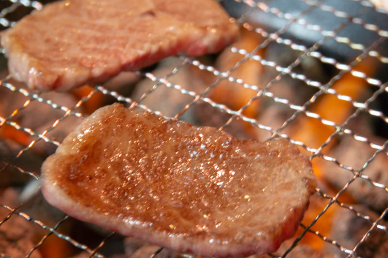 いい具合に焼けてきまして、食欲を掻き立てます。自分の食べたいタイミングでお肉を焼く贅沢。素晴らしい!!