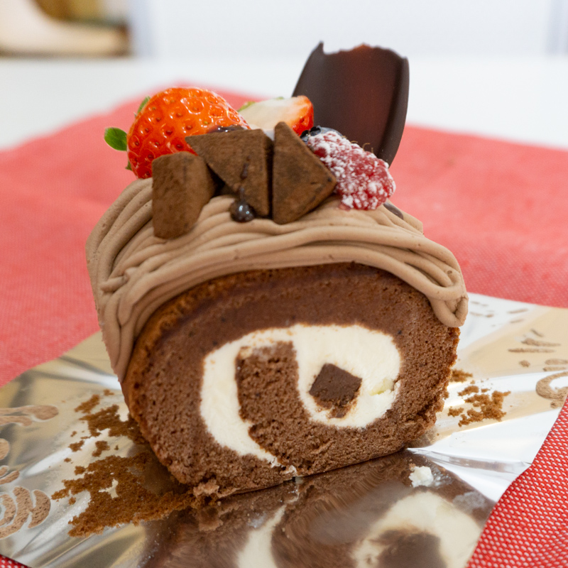 側面もチラリ。ロールケーキの中にも生チョコが・・・!