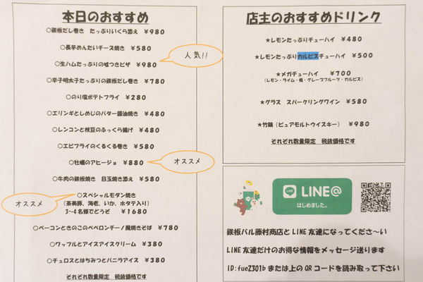 鉄板バル藤村商店です!