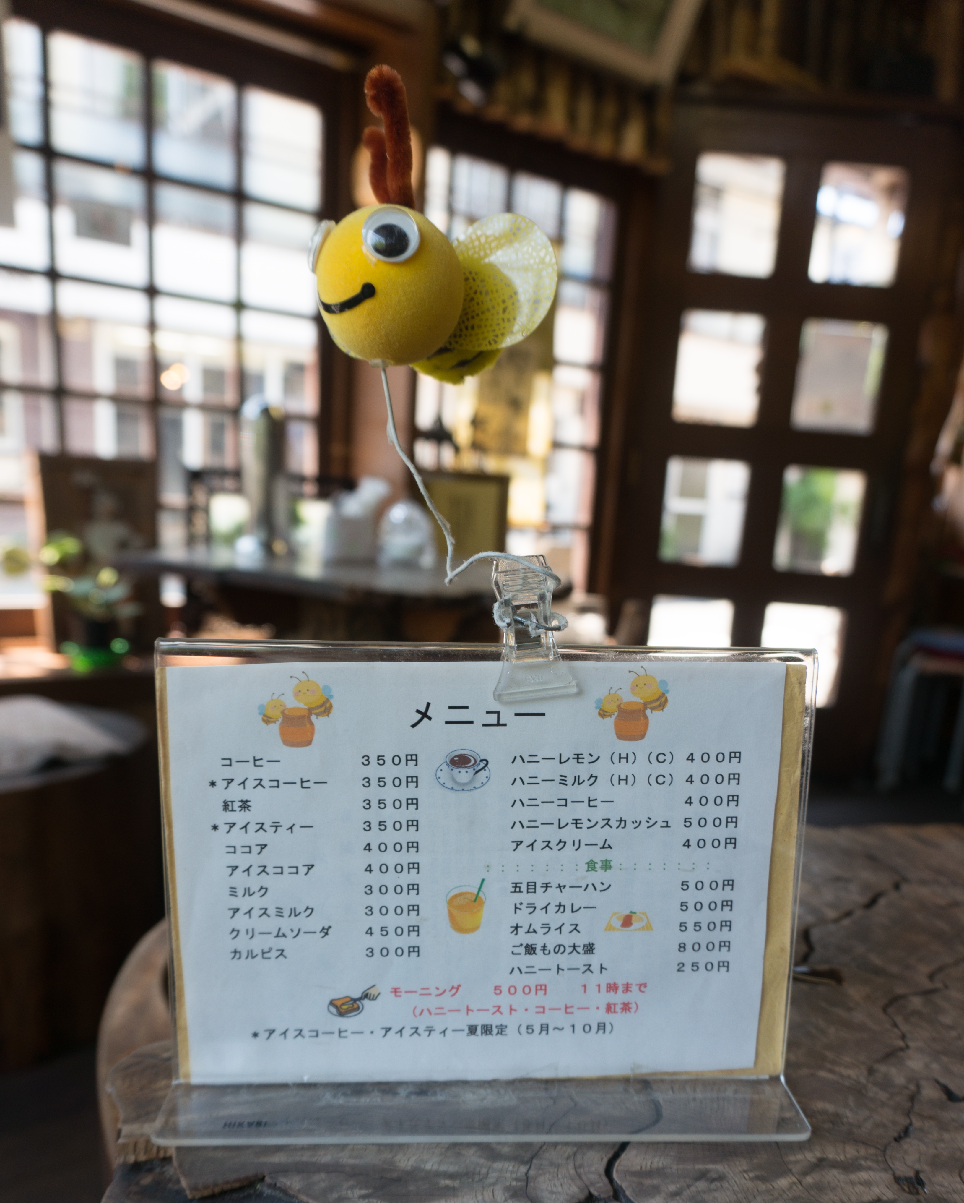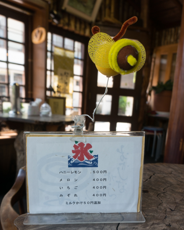(かき氷以外のメニューはこちら。蜂さんも正面向いています。)