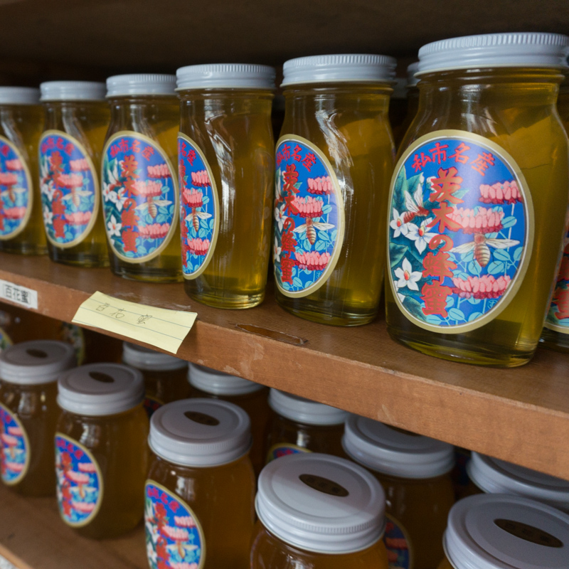 いただいたチラシによると茨木養蜂園は、春は私市の山で、7月〜9月は北海道で養蜂(トラックでミツバチを運ぶそう!)するという大阪で唯一の『移動養蜂家』なんだとか。すごい!