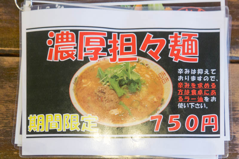 担々麺メニュー。