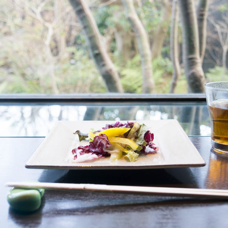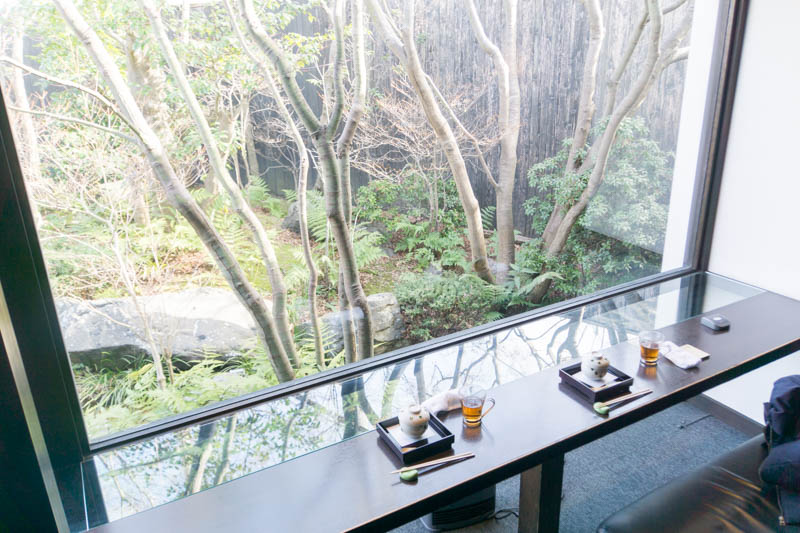 座敷っぽい席もありますが、今回は窓から庭園を望む席。