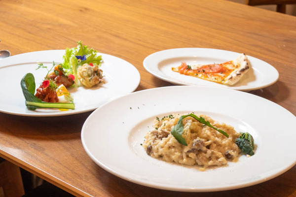 前菜盛り、カットピザ、日替わりパスタor無農薬有機玄米リゾットのセットです。