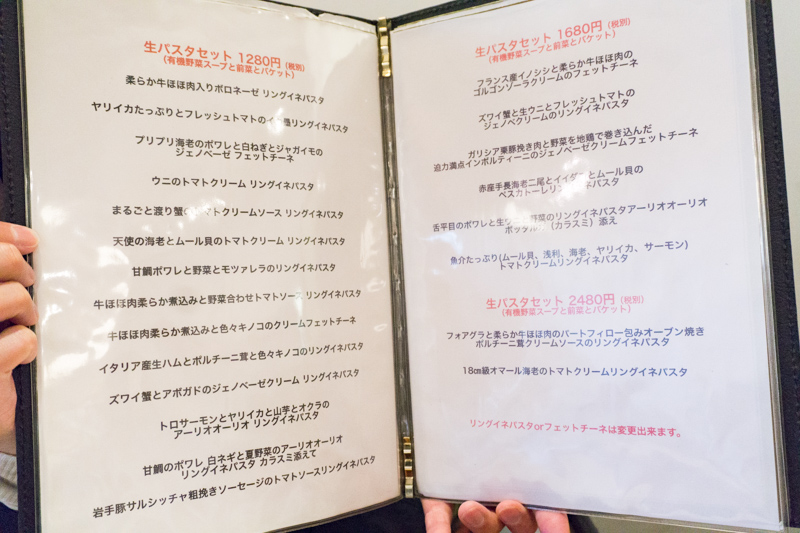 (パスタの種類はフィットチーネとリングイネの2種類から選ぶことが可能)
