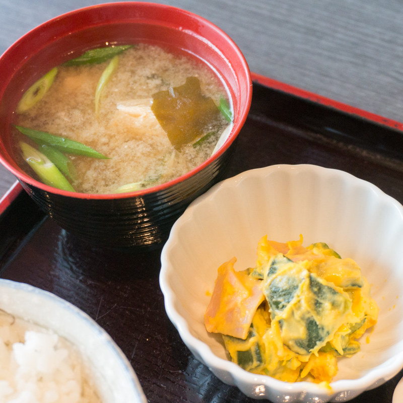 料理は既製品は使わずに1から手作りすることがこだわりとの事で、愛情のつまったチキンカツは衣がサクサクでお肉も柔らかくジューシー。