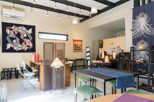 定休日は大正琴教室など貸し教室を行っていたり、店内で陶器や雑貨類を販売していたりと何だか色々と興味を唆られるカフェ。引き戸を開けてみると白の壁に色とりどりの小物たち。とても素敵な空間が広がっていました。