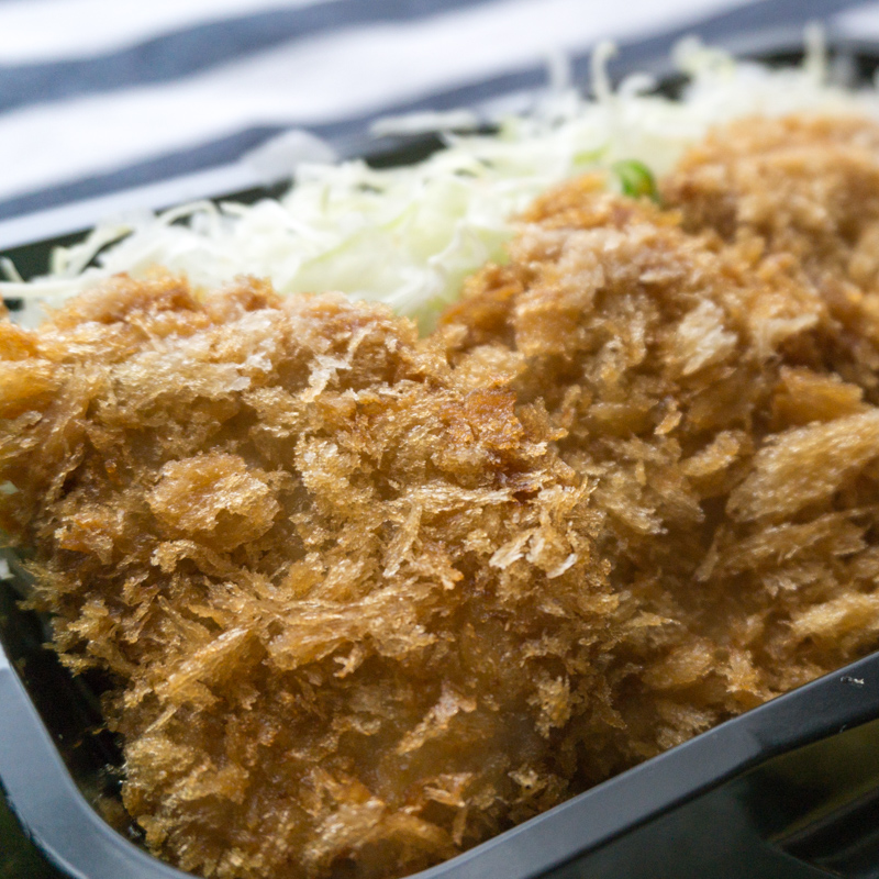 ヒレかつが3枚、かつの下にはキャベツがたっぷりと入っています。