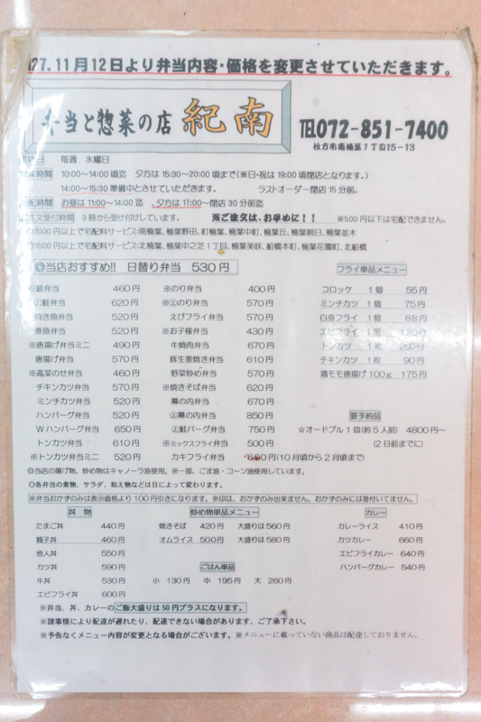 普段お弁当を買う時はほっかほっか亭が多い私タクワンですが、ほっかほっか亭を脱し訪れたのがこちらのお店、「紀南」さん。今回は日替り弁当を注文してみました。