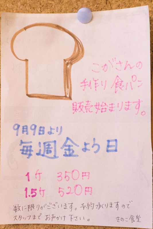 お店の外観写真でちらっと書いてあったので、もしかしたら気がついていた方もいるかもしれませんが、きのこ食堂では「金曜日限定食パン」が販売されています。