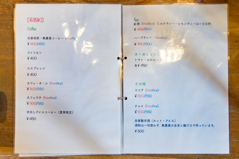 メニュー。(→その2 / 3 / 4)卵を使わないオムライスとか気になります。