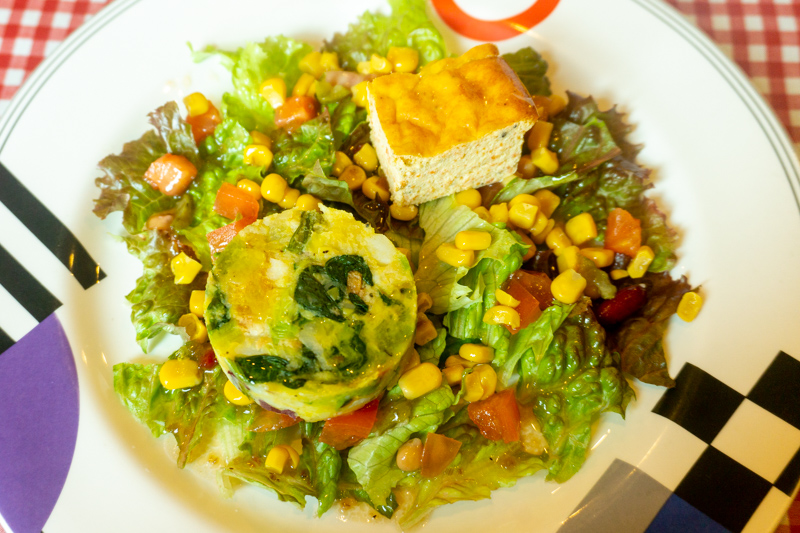 その下の円形のものはリベロ風カポナータをサラダにしたものだそうで、中にはエビ、ジャガイモ、ジャガイモ、さつまいも、白菜、小松菜、大根が入っています。