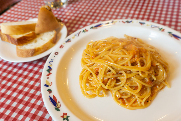 やってきました、メニュー名を見て即決したスパゲッティ。辛いスパゲッティってペペロンチーノをイメージしますが、トマトソースってところが気になりました。