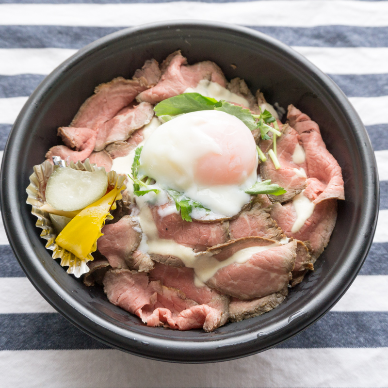 ちなみにこちらはローストビーフ丼。(1,300円税別)※卵は別添えだったのもを乗せました