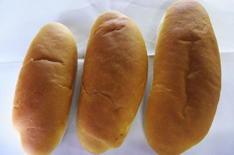 左から、低学年、中学年、高学年用のパンのサイズ。