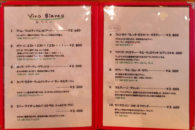 パスタ/ アラカルト&ピザ/ドリンク/ 赤ワイン/白ワイン/ デザート