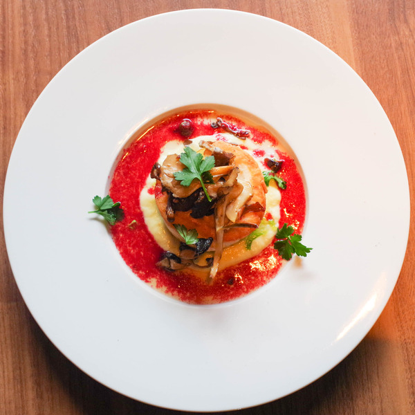 白菜・ビーツ・焦がしバターのソースがかかっていまして、まあ当然めちゃくちゃ美味いですよね。