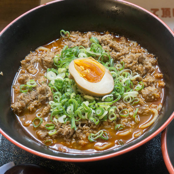 麻婆豆腐をラーメンにしたような感じなんですが、スープは担々麺系で、麺は太麺。