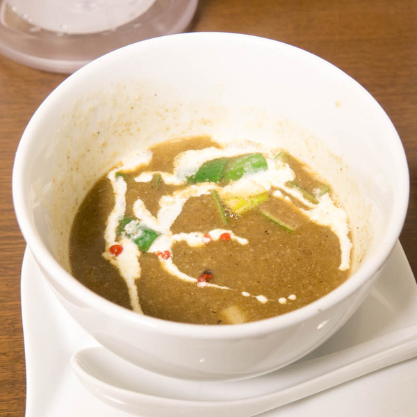 つけ麺のスープは魚介系ですが、彩りがキレイですし、その彩りがキレイなもの(何かわからなかった)と一緒に食べると、また違った美味しい味に!