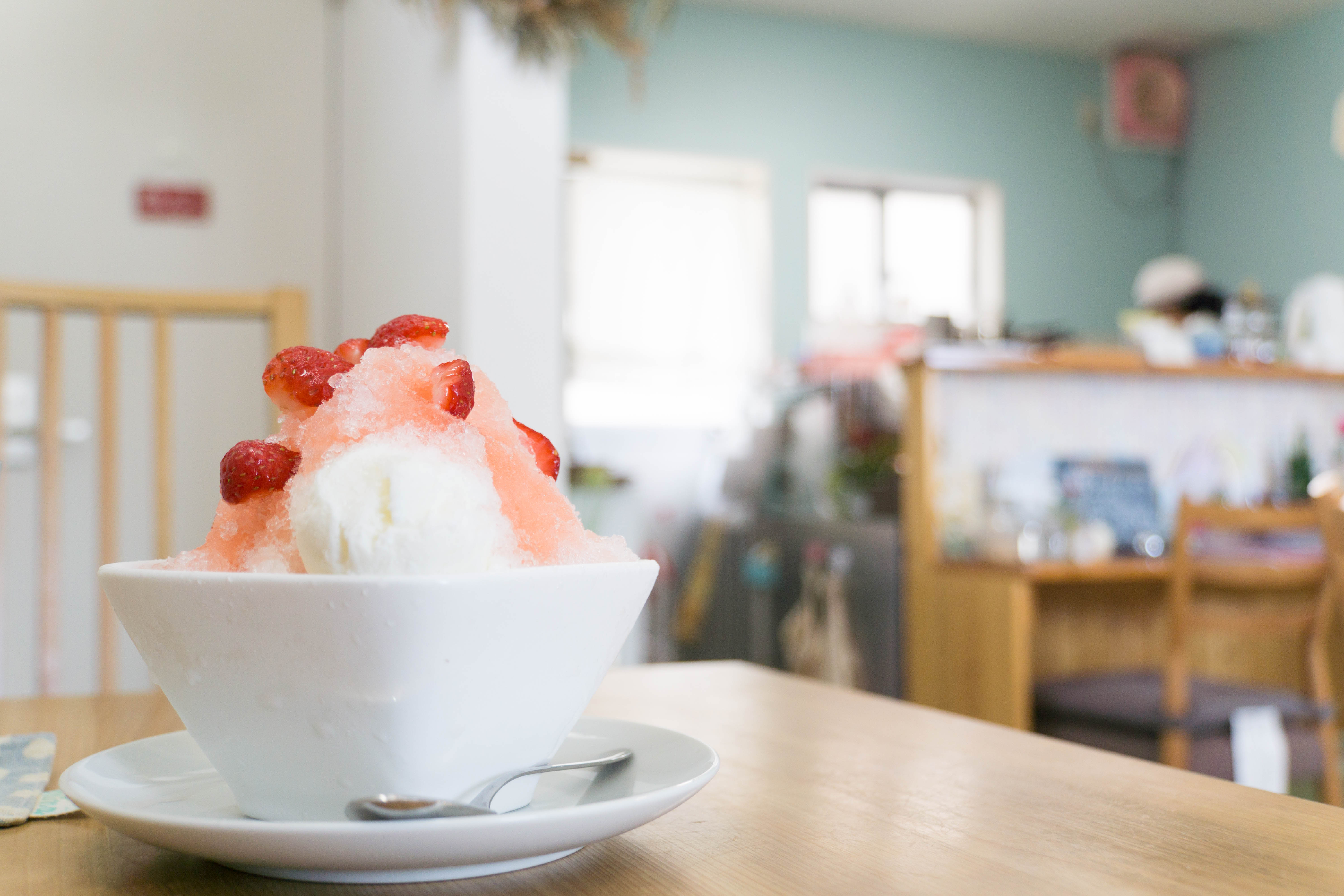 苺が強すぎず、主張しすぎない、でも苺、そんなシロップを氷と一緒に食べると、しっかり味がついていて美味しい。