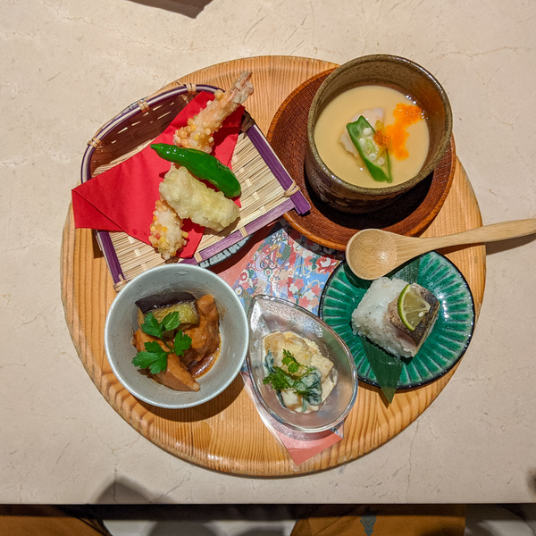 そしてメインの今月のMOMIJIプレート。茶碗蒸しに天ぷら、押し寿司など。