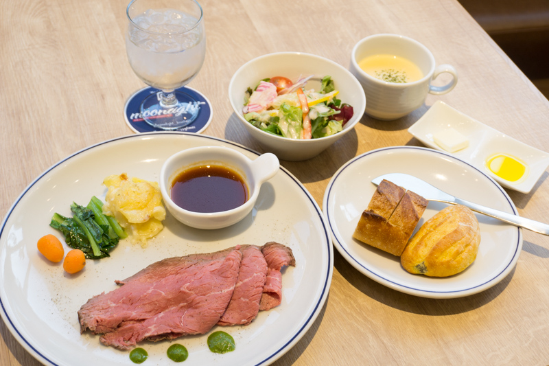 この日は厚切りのローストビーフがメインディッシュ。(日によって鶏肉や豚肉、魚などがメインディッシュになるとのこと)