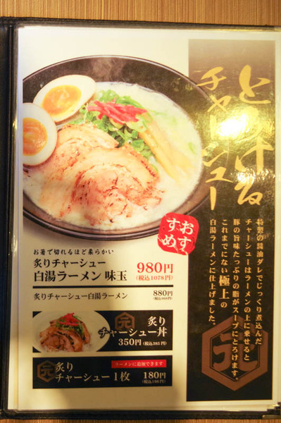 の『炙りチャーシュー 白湯ラーメン 味玉付き』(980円税抜)です!