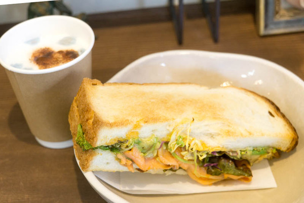 こちらはすどんが注文した「アボカドとスモークサーモンのサラダサンド(350円税込)」