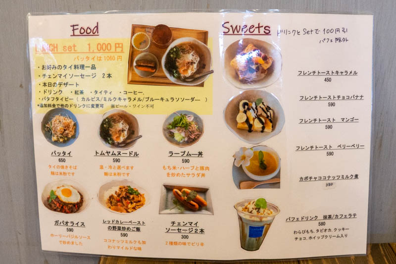 ランチセットは1,000円(税別)。あとにメニューを載せますが、ランチセットは好きなタイ料理1品を色々と選ぶことができます。