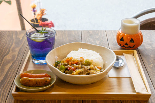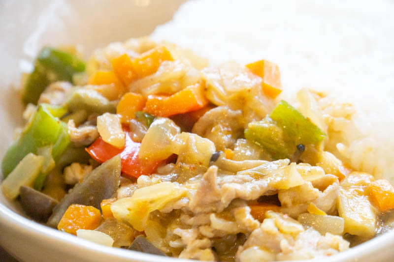 色とりどりの野菜が入っている「レッドカレーペーストの野菜炒めご飯」。