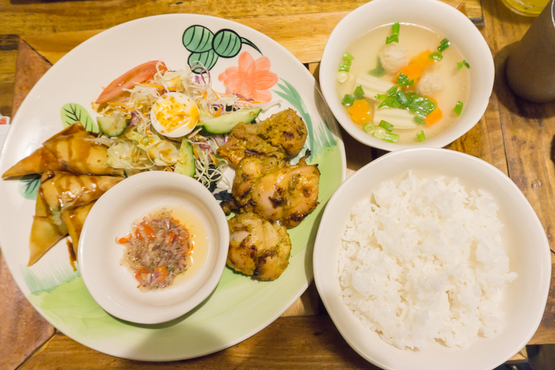 バリ焼き飯とガイトートタカイ(レモングラス風味の鶏の唐揚げ)とあっさりすましスープがついた枚方店限定の週替りランチセットです。