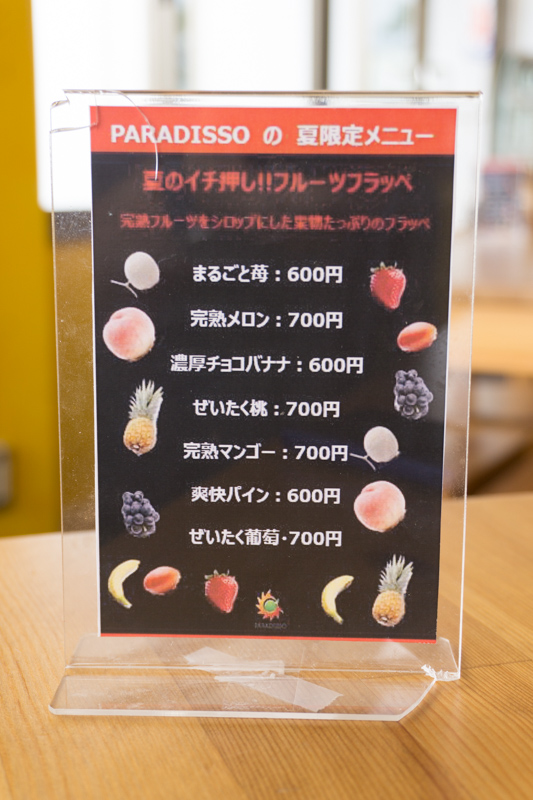 もう一つ、夏限定メニューの夏のイチ押し、フルーツフラッペ究極フルーツをシロップにしたフラッペも気になりました〜!