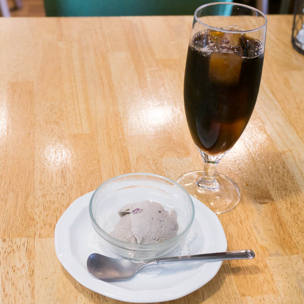 デザートのブルーベリーアイスとアイスコーヒー。