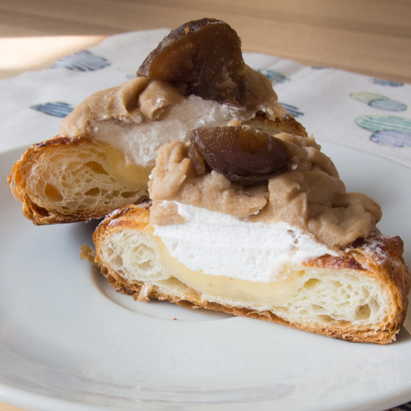 その上にほどよい量のカスタード、ホイップが加わり、マロンクリームで包み込むようなイメージ。