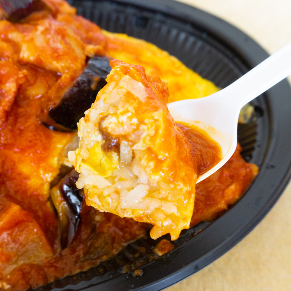 のベーコンと茄子のトマトソースオムライス(780円税込)です!