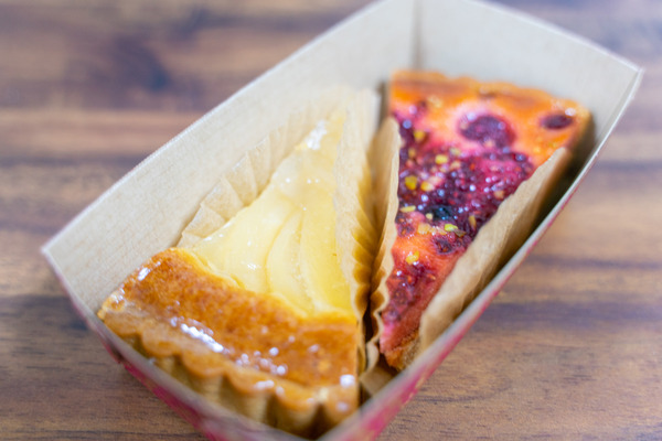 写真を見たらわかるんですが、クリームがひいているタイプのタルトじゃなくて、キッチリ火が通ってて日持ちする、ケーキよりも焼き菓子よりのタルト。