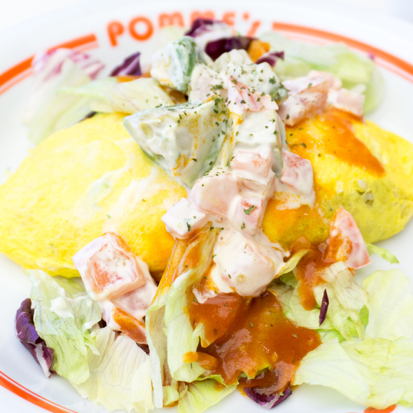オムライスの上にはマヨネーズで和えたゴロゴロのアボカドとトマト、そしてざくざくカットのレタスがたっぷり!ソースはイタリアンソース。濃すぎずあっさり過ぎず、ちょうどいい味でした。夏バテ気味でもスッキリ食べられて、女性に大人気のメニューとのこと。