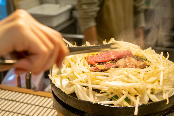 この形状の鉄板で焼くことで、周りの野菜にお肉の油が染み込んで美味しくなるとのことです!