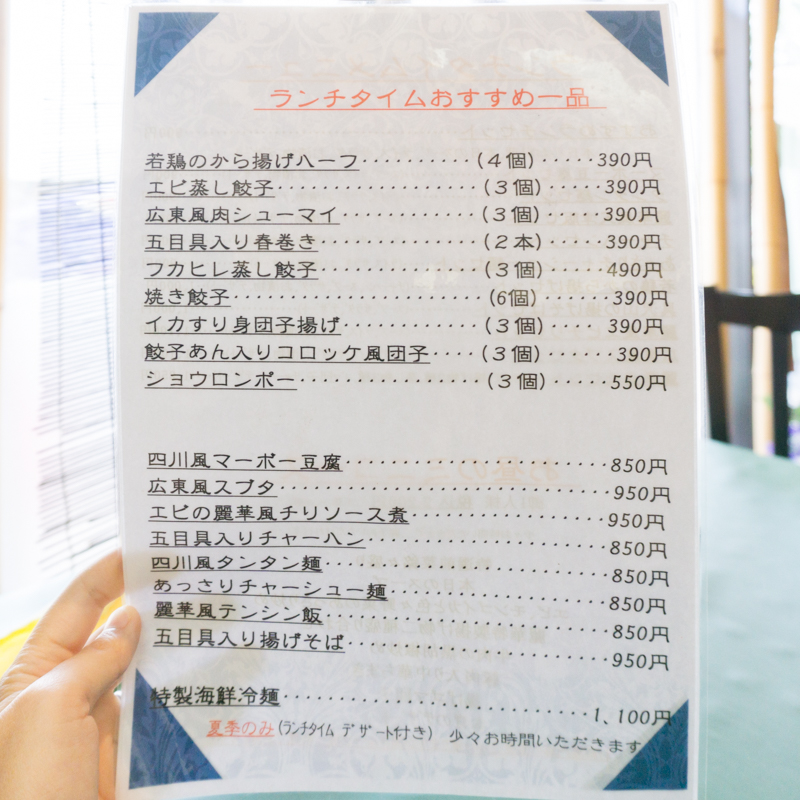 ランチメニュー。(お昼の一品料理はこちら)