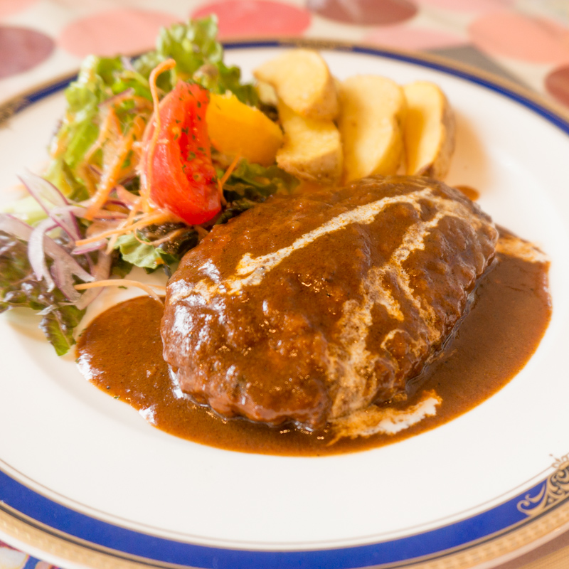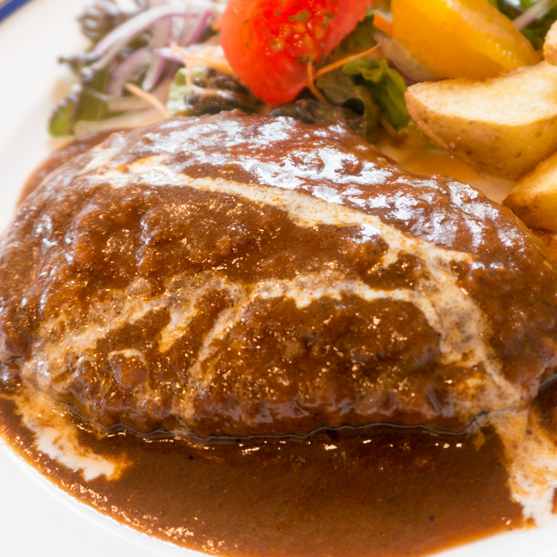 ランチタイムにおじゃましてチキンハンバーグを注文。